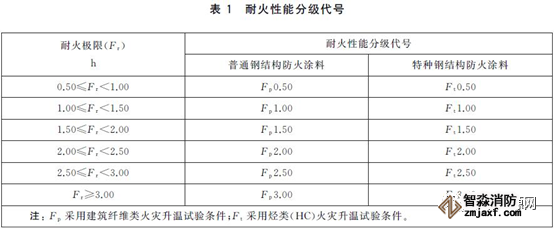 1、鋼結構防火涂料的耐火性能分級,按耐火極限分為6級:0.50 h、1.00 h、1.50 h、2.00 h、2.50 h和3.00 h。